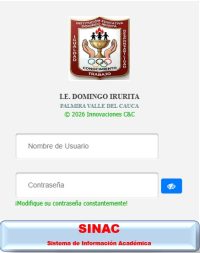 la Institución Educativa “DOMINGO IRURITA” de carácter oficial del Municipio de Palmira – Valle del Cauca. Ubicados en las comunas 3 y 7, brindando una educación de calidad para los niveles de preescolar, educación básica y media, además contamos con la Articulación SENA, en modalidades Deportiva, Emprendimiento y Alistamiento de Laboratorios de microbiología y biotecnología. También contamos con Educación para Jovenes y Adultos en Jornada Nocturna.