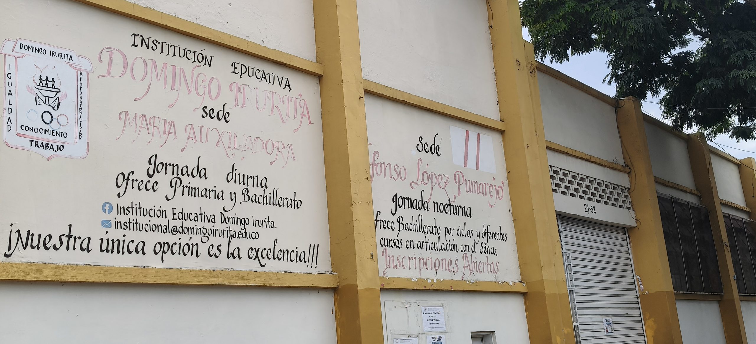 la Institución Educativa “DOMINGO IRURITA” de carácter oficial del Municipio de Palmira – Valle del Cauca. Ubicados en las comunas 3 y 7, brindando una educación de calidad para los niveles de preescolar, educación básica y media, además contamos con la Articulación SENA, en modalidades Deportiva, Emprendimiento y Alistamiento de Laboratorios de microbiología y biotecnología. También contamos con Educación para Jovenes y Adultos en Jornada Nocturna.